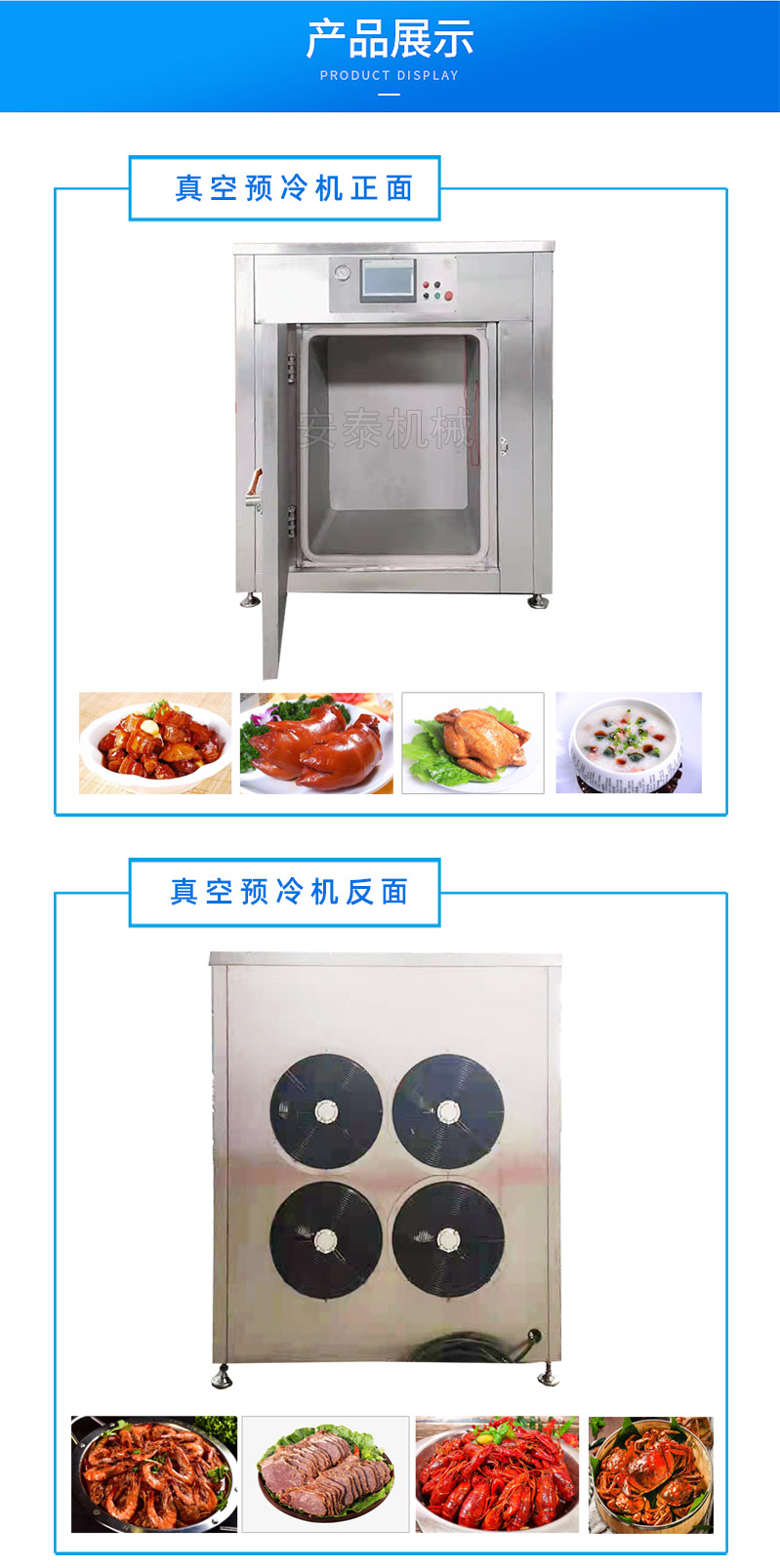 真空快速冷卻機只需8-15分鐘;真空密閉狀態下;迅速將高溫食物均勻降至保鮮溫度,跳過高溫細菌衍生期,保持產品色澤艷麗,延長保鮮期。 真空預冷機主要適用產品肉類、米飯、烘焙食品、加工中央廚房、水產海鮮、果蔬 、鮮花、 配送中心,應用于熱處理熟食品的快速降溫,冷卻過程節能、環保解決傳統冷庫降溫過程中存在的細菌超標、時間長、能耗高等問題,高產能并味美色佳,延長食物貨架保質期;